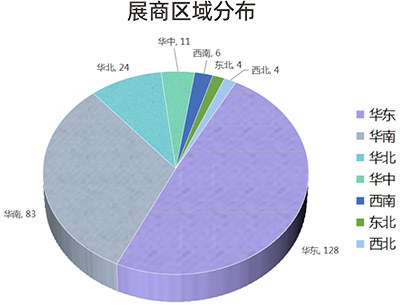 本次參展商以華東和華南展商為主,分別占了49.2%和31.9%;