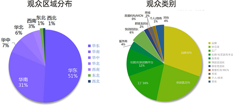 但細分來看,團購賽道以女性,母嬰人群為主,目前關注到這個賽道的品類中,食品展商是對這個賽道最關注的,參展企業比例也是最高的;