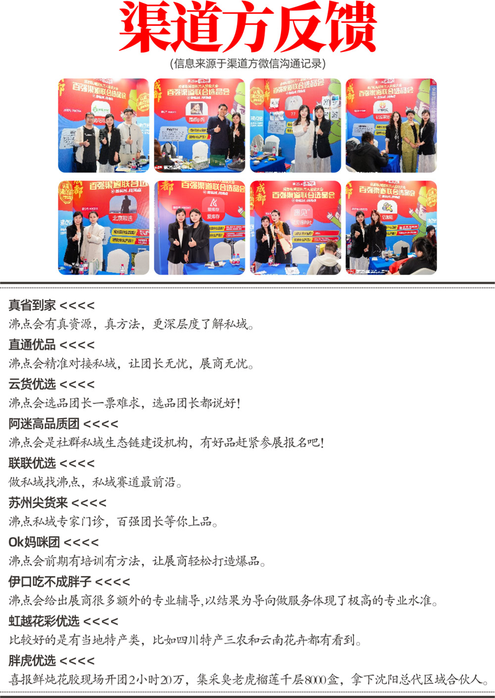 沸點會資源群,與頭部渠道在同一個群里,可以鏈接到頭部渠道的同時讓團長提前熟悉產品,便于現場快速對接!