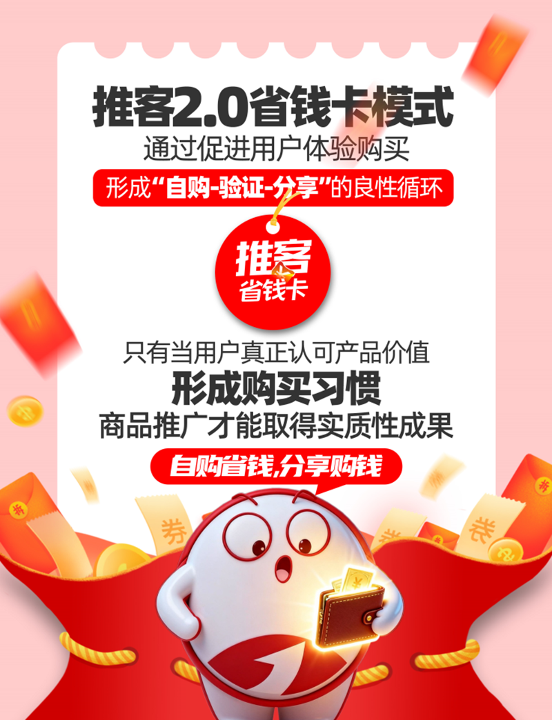 傳統(tǒng)的推客模式往往依賴于推廣者的社交關(guān)系鏈進(jìn)行單向信息轟炸,而忽略了消費(fèi)行為本身的價值。推客省錢卡2.0模式對此進(jìn)行了根本性重構(gòu)。它借鑒并升級了“自購省錢”的成功玩法,將商業(yè)邏輯的起點(diǎn)牢牢錨定在“用戶體驗(yàn)”之上。