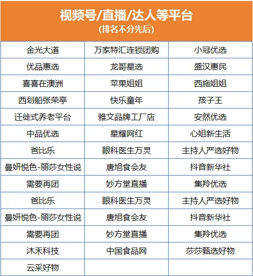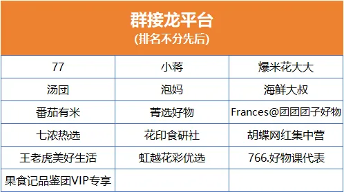 渠道包含:社群團(tuán)購(gòu)平臺(tái)、社區(qū)團(tuán)購(gòu)平臺(tái)、社交電商平臺(tái)、微信團(tuán)購(gòu)群群主、快團(tuán)團(tuán)大團(tuán)長(zhǎng)、群接龍大團(tuán)長(zhǎng)、有贊分銷店主、微店分銷店主、自媒體公眾號(hào)、微博分銷、小紅書博主、私域團(tuán)購(gòu)電商、私域直播、抖音主播、快手主播、視頻號(hào)主播、MCN機(jī)構(gòu)等。