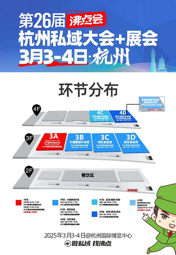 2025年3月3-4日的杭州私域直播展會(huì),在杭州國(guó)際博覽中心舉辦,由沸點(diǎn)會(huì)主辦,設(shè)置了5大展館,展覽面積超5萬(wàn)平,可容納超1000家展商,可展示上萬(wàn)款新品爆品。