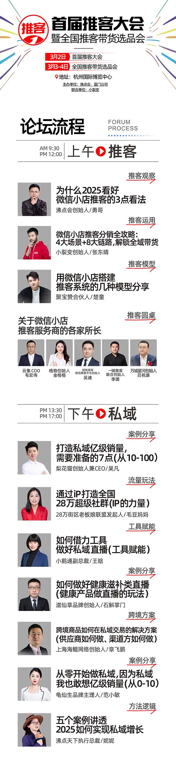 3月2日舉辦首屆推客大會(論壇規(guī)模1200人+)邀請了一批微信小店推客的服務(wù)商跟大家一起交流推客的幾種形態(tài)及發(fā)展方向,以及如何賦能等。讓更多人了解推客!